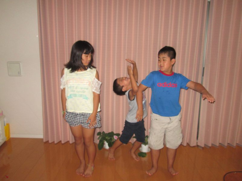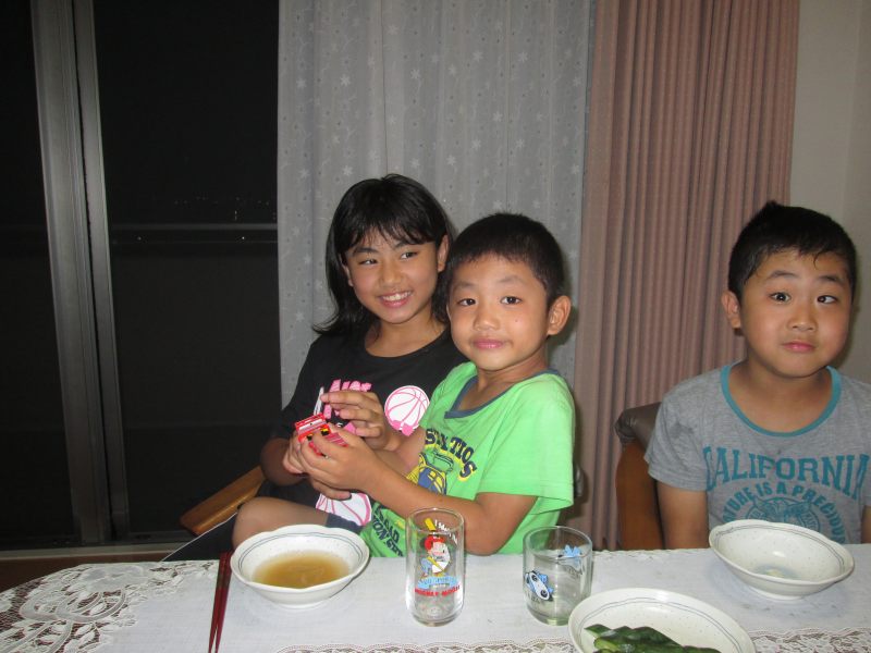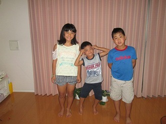 きのうの夜中に、愛知から美映家族がやってきた。 車の中で寝てきたからと朝から超元気! 睡眠は充分なのね。 有佳里6年生、光汰朗3年生の上の2人に比べて、幼稚園の朝大は 写真を撮ると云うと、すぐふざけてしまうお調子者だ。(笑) まだまだ可愛いね。 午前中は、おじいちゃんが恒例のボーリング場に3人を連れて行ってくれた。