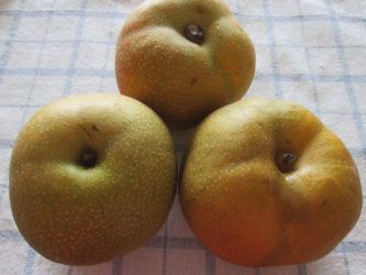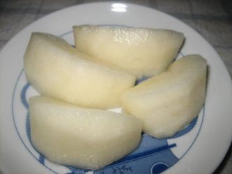 そして愛知県の豊橋の梨(幸水)も、たくさん持ってきてくれた。 | 梨は全国いろんな所で栽培しているんだね。 栃木県の梨も美味しいけれど、 愛知の梨も甘くて水々しくて、美味しいね。 主人がむいてくれた。